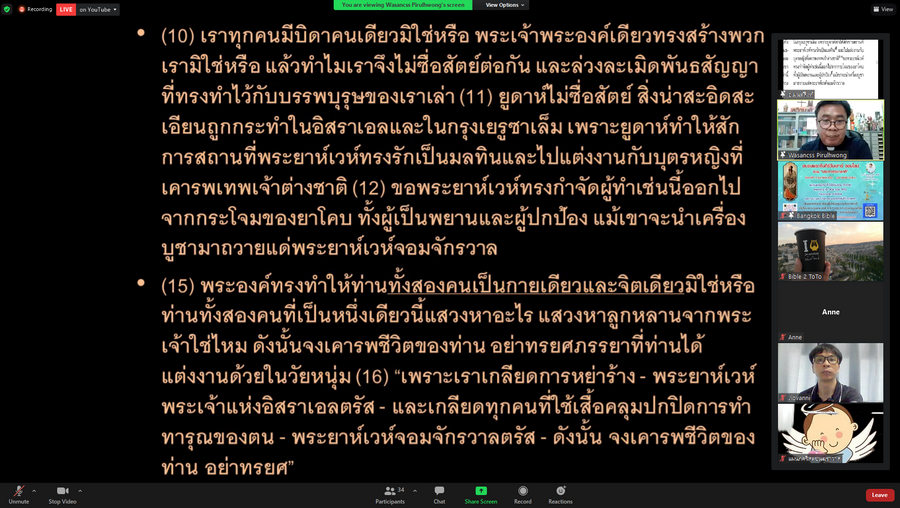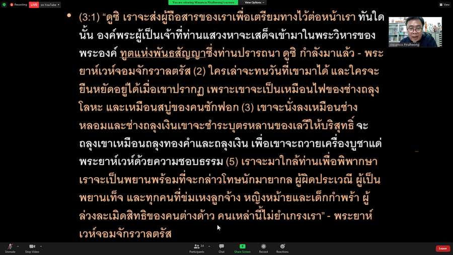 อบรมพระคัมภีร์พันธสัญญาเดิม หัวข้อ “หนังสือประกาศกโยเอล ประกาศกมาลาคี และประกาศกโอบาดีย์”