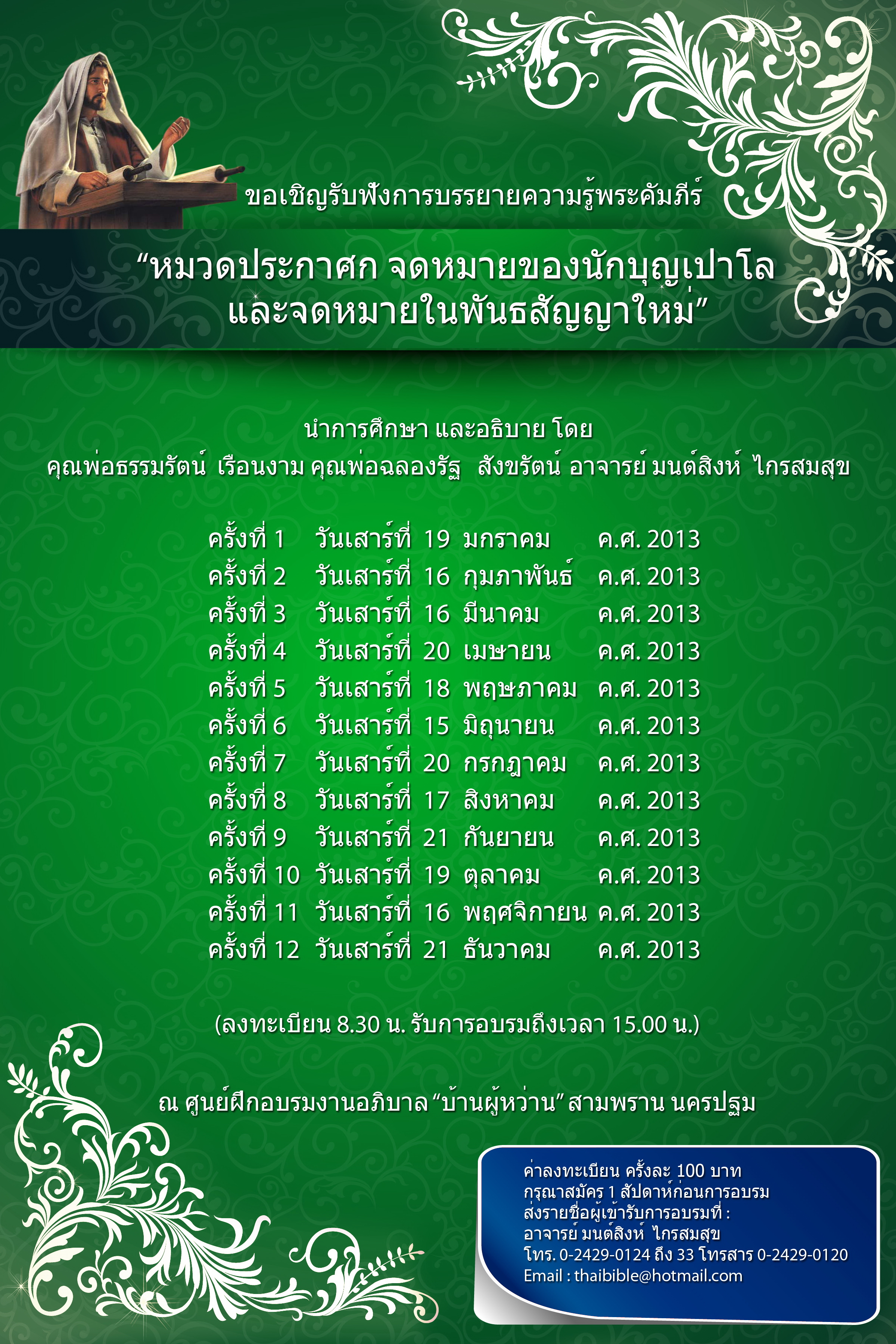 ขอเชิญรับฟังการบรรยายความรู้พระคัมภีร์