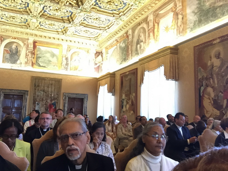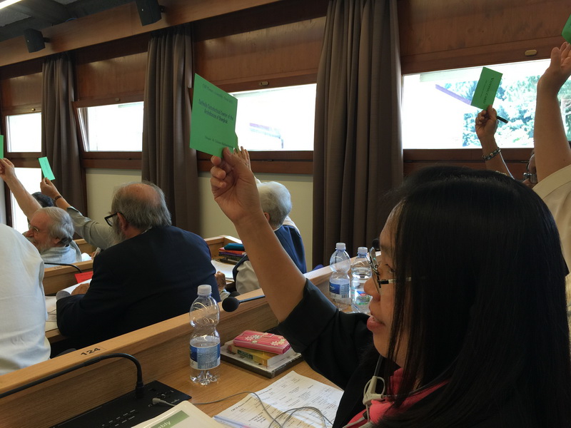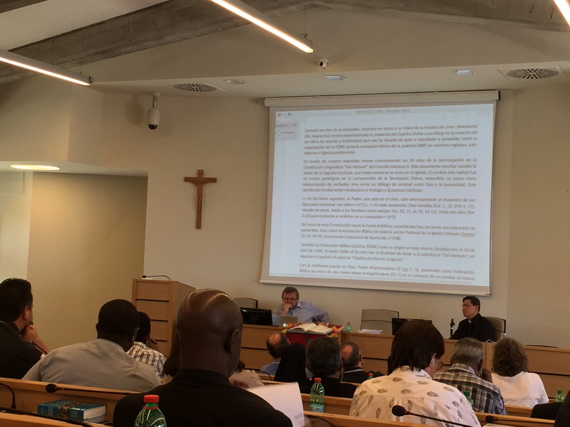 ช่วงบ่ายฟังวิทยากรสตรี Prof. Nύria Calduch – Benages/ศาสตราจารย์ชาวบราซิล สอนที่มหาวิทยาลัยเกรโกเลี่ยน มาแบ่งปันเรื่อง 50 ปี Dei Verbum และฟังรายงานจากแต่ละทวีป 8 เขต คือ ลาตินอเมริกา อเมริกาเหนือ ยุโรป อาฟริกา เอเชียเหนือ เอเชียใต้ เอเชียตะวันออกเฉียงใต้ และโอเชียเนีย ซึ่งหลายเขตมีสงครามและการเบียดเบียนความเชื่อ
