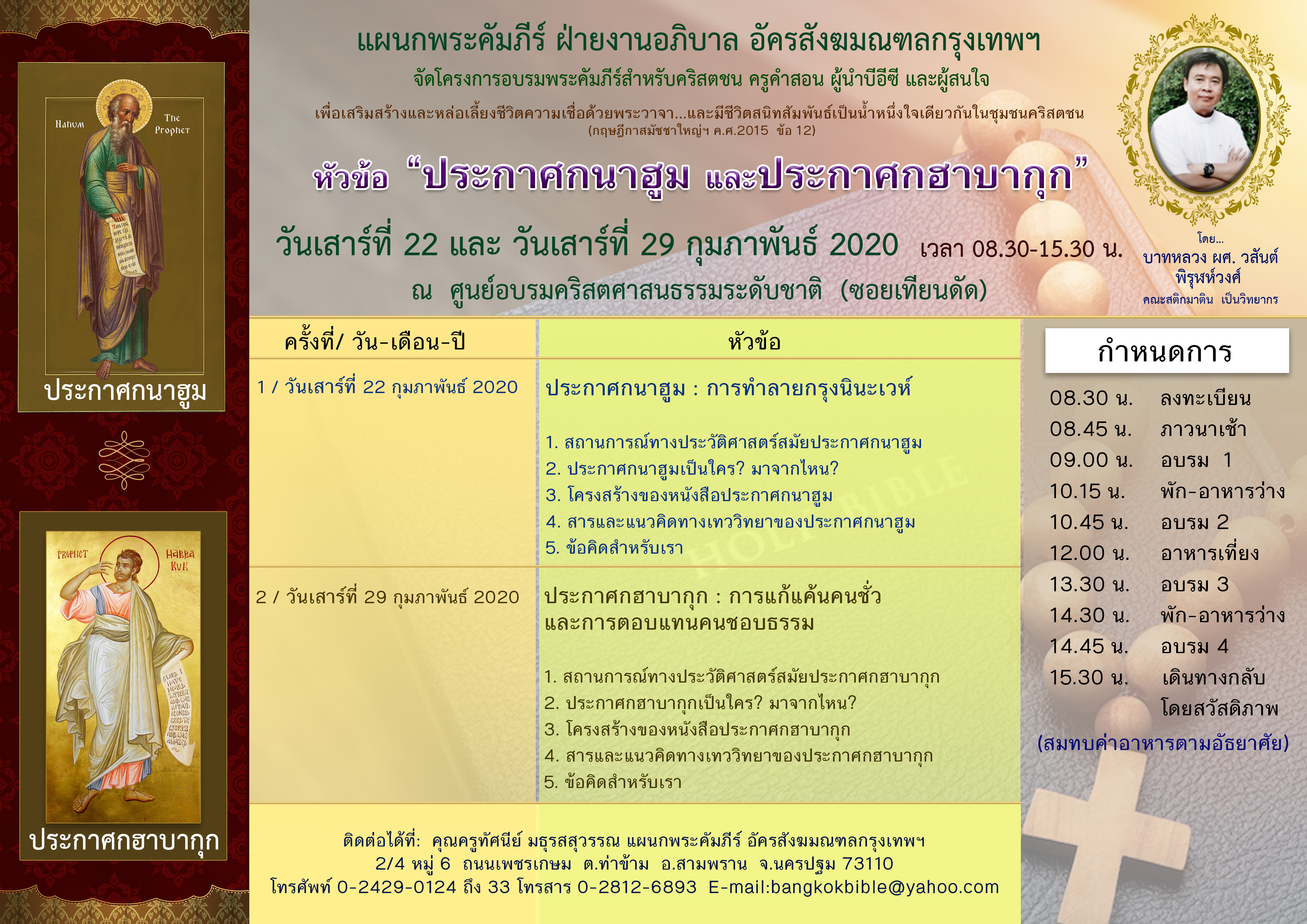 อบรมพระคัมภีร์ หัวข้อ "หนังสือประกาศกนาฮูมและประกาศกฮาบากุก"