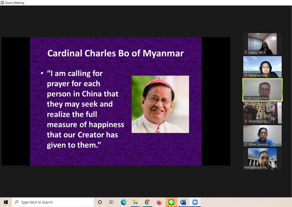 สมาชิกสหพันธ์พระคัมภีร์คาทอลิก เอเชียตะวันออกเฉียงใต้ (Catholic Biblical Federation -Southeast Asia ; CBF-SEA) ประกอบด้วยสมาชิกจาก ประเทศไทย เมียนม่าร์ เวียตนาม มาเลเซีย อินโดนีเซีย กัมพูชา ลาว ประเทศฟิลิปปินส์ โดยมี Dr. Nati B. Pagadut , coordinator of CBF-SEA ได้เชิญชวนสมาชิกร่วมกันสวดภาวนาตามคำเชื้อเชิญของ พระคาร์ดินัล Charles Bo of Myanmar ขอให้วันที่ 24-30 พฤษภาคม 2021 เป็นสัปดาห์แห่งการภาวนาวอนขอสันติภาพ ด้วยความหวังว่าเราทุกคนสามารถอยู่ร่วมกันได้แบบพี่น้อง สำหรับพระศาสนจักรและประชากรในประเทศเมียนม่าร์และประเทศจีนด้วย