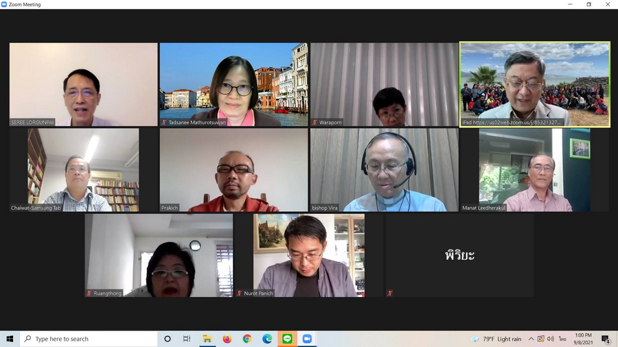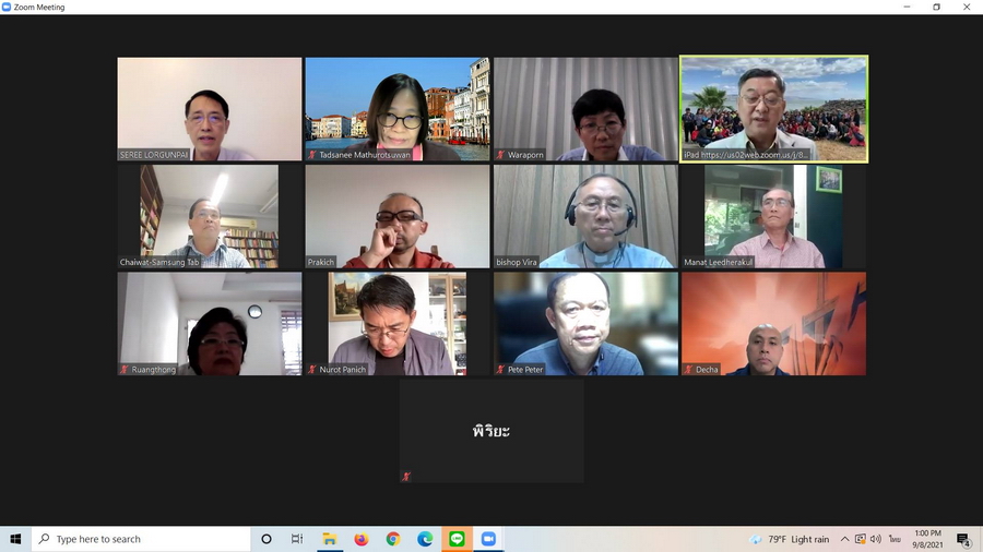 ประชุมกรรมการอำนวยการสมาคมพระคริสตธรรมไทย สมัยสามัญ ครั้งที่ 3/2021 วันพุธที่ 8 กันยายน 2021 เวลา 13.00-15.00 น. ผ่านสื่ออิเล็กทรอนิกส์ (Zoom ) โดยมีศาสนาจารย์ธงชัย ประดับชนานุรัตน์ เป็นประธาน ศาสนาจารย์ ดร.เสรี หล่อกัณภัย เป็นเลขาธิการฯ ดำเนินการประชุม ร่วมกับกรรมาการฯ 14 ท่านและเจ้าหน้าที่ 2 ท่าน และมีกรรมการฯ ผู้แทนจากฝ่ายคาทอลิก 3 ท่าน คือ บิชอปวีระ อาภรณ์รัตน์ ประธานคณะกรรมการฯ แผนกคริสตศาสนธรรม และรองประธานคณะกรรมการฯ แผนกพระคัมภีร์ สภาพระสังฆราชคาทอลิกฯ คุณพ่อปิยะชาติ มะกรครรภ์ (อดีตเลขาธิการ แผนกพระคัมภีร์ และผู้ช่วยพระสังฆราชฝ่ายอภิบาล) ปัจจุบันท่านดำรงตำแหน่งอุปพระสังฆราช อัครสังฆมณฑลกรุงเทพฯ และคุณครูทัศนีย์ มธุรสสุวรรณ เลขานุการ คณะกรรมการฯ แผนกคริสตศาสนธรรม เข้าร่วมประชุม ฯด้วย ทางสมาคมฯ จะมีการจัดสมัชชาของสมาคมฯ ในวันเสาร์ที่ 20 พฤศจิกายน 2021 ทางออนไลน์ ซึ่งจะมีกำหนดการมาประชาสัมพันธ์ในโอกาสต่อไป